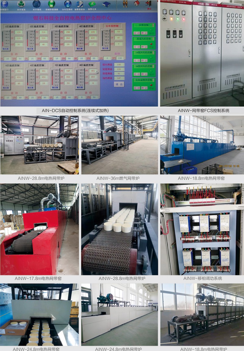 網(wǎng)帶窯爐屬于連續(xù)性窯爐,傳動方式為金屬網(wǎng)帶,金屬網(wǎng)帶由托輥或托板承載,主要用于陶瓷玻璃烤花、玻璃熱彎成型、玻璃退火、催化劑再生、粉體材料的干燥、焙燒。按加熱方式可分為燃氣網(wǎng)帶窯和電熱網(wǎng)帶窯兩類。網(wǎng)帶根據(jù)溫度選用不同材質的不銹鋼材料,受金屬材質所限,一般網(wǎng)帶窯使用溫度≤1050℃。主要適用于特種陶瓷、結構陶瓷、電子陶瓷、功能陶瓷、磁性材料、電子粉體、電子器件、蜂窩陶瓷等領域,具有質量穩(wěn)定可靠,爐溫均勻,得到客戶認可,特別是節(jié)約能源做了大量工作。